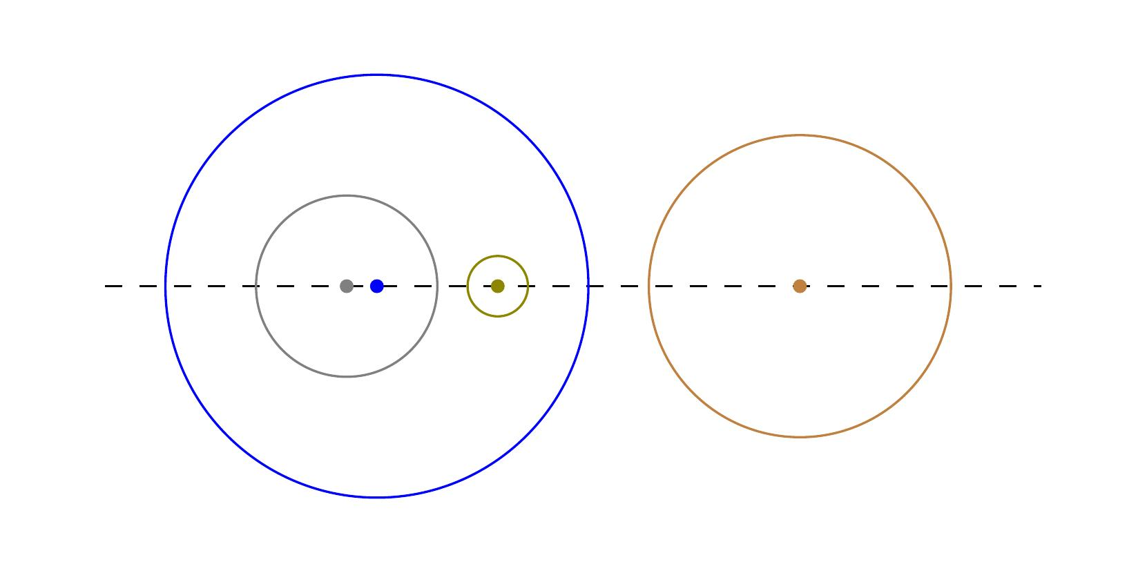 - 若某个圆 C 包含了两个圆 C 和 C′,则 C 和 C′ 必定存在包含关系(二者之一包含另一个)。