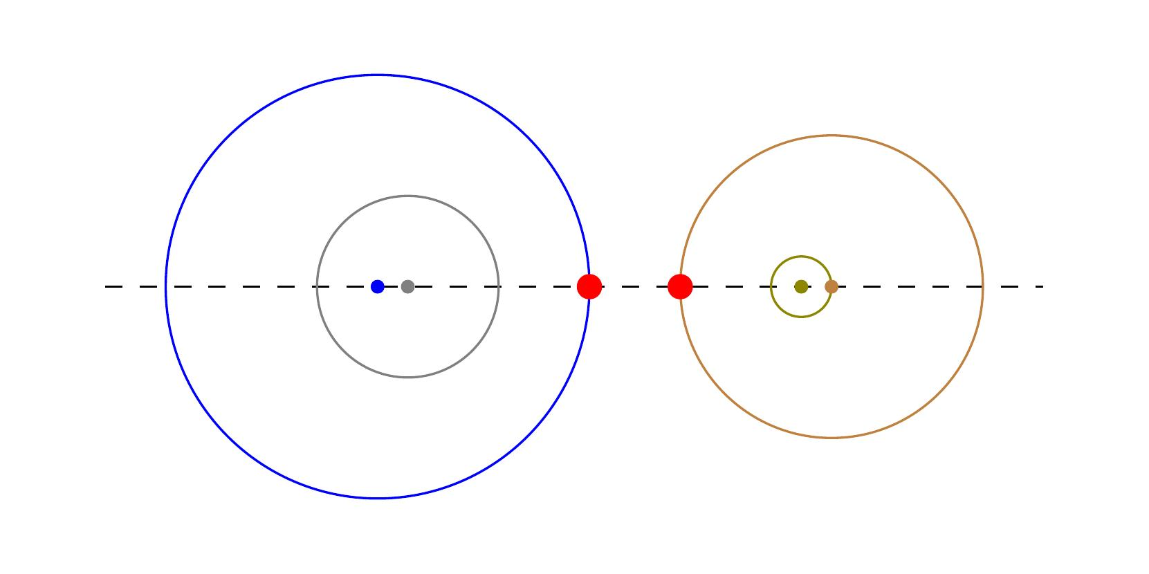 在该布局中,不同圆的任意两点之间的最小距离为 3,用红点标记了这两个点。因此该布局的质量为 3,这是本例所有可行布局中可能的最大值。仅圆 4 必须被另一圆包含,其余圆可以被包含也可以不被包含。