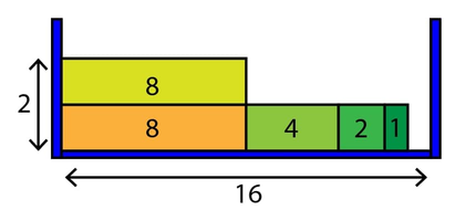 在上图中,每个矩形内的数字表示其宽度。二维盒子的宽度为 16(下方箭头所示)。在这种情况下,二维盒子的最小高度为 2(左侧所示)。