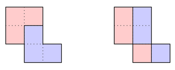 左侧的划分得到的多连方不是平移全等的,右侧的划分得到的多连方不是连通的。
