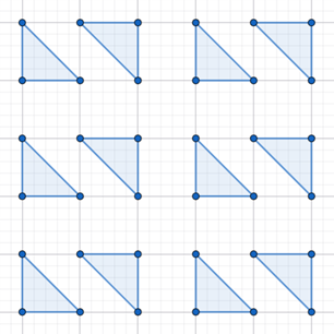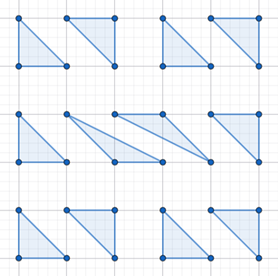 - 每个三角形的三个顶点都在格点上,且恰好有三个不同的顶点。