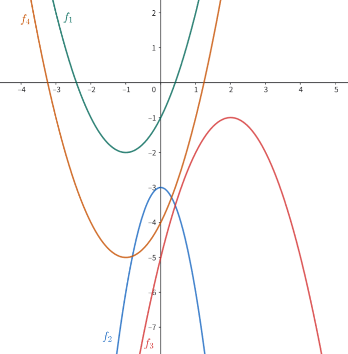 - f4(x)=x2+2x−4。